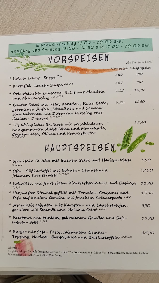 Welcome to Ti's Cafe, a hidden gem nestled in the charming town of Minheim. This delightful spot boasts a menu crafted to satisfy both vegan and non-vegan palates alike. After a long bike ride, you can relish the mushroom wrap or a refreshing salad with hummus, both praised for their freshness and flavor. Don't miss out on their tofu Rösti or the unique red cappuccino, made with rooibos tea—an unforgettable choice.